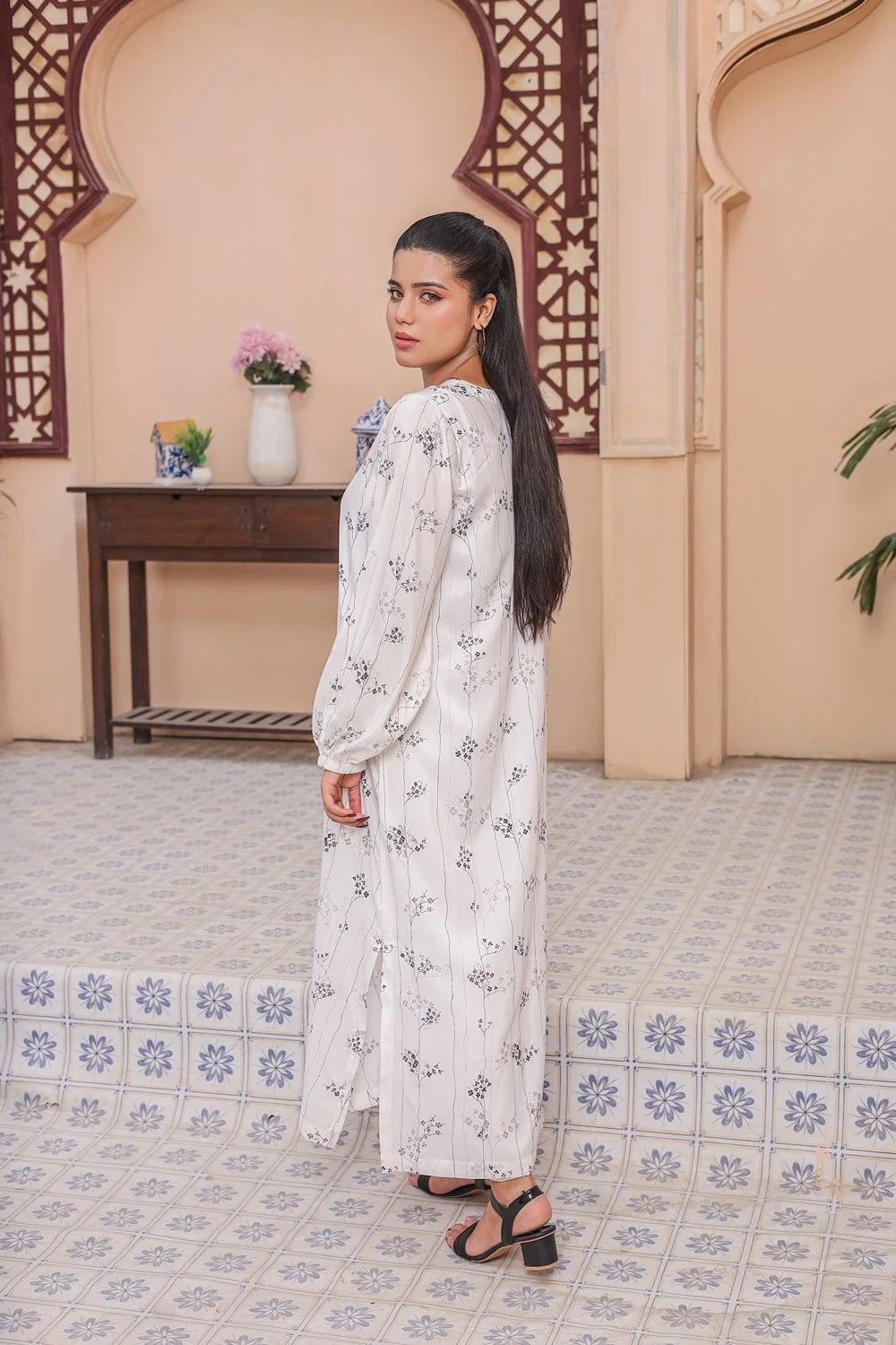 • Elegant Long Shirt: Features a flattering, flowing silhouette with a subtle opening at the bottom for modern style and comfort.